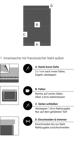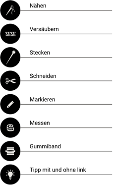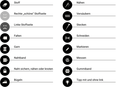 Alle Modelle, Schnittmuster, Pictogramme, Icons, Bilder, Videos und Zeichnungen stehen unter Urheberschutz. Gewerbliches Nacharbeiten ist untersagt. Für Fehler im Schnitt, Anleitung, Materialangaben, Tipps, Handhabung o.ä., kann keine Haftung übernommen werden.