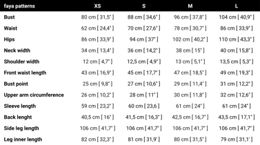 Faya patterns include a cutting plan and fabric suggestion. If you prefer a different fabric with another width, please determine your exact fabric needs.